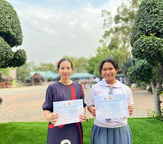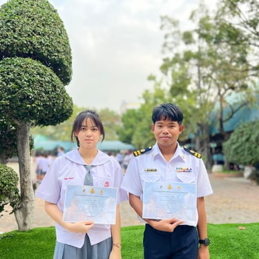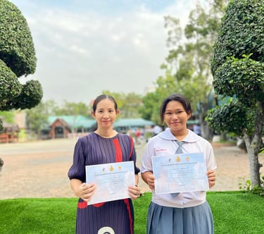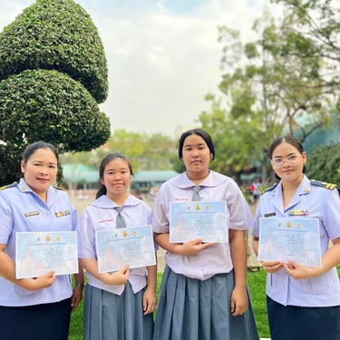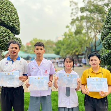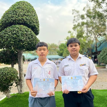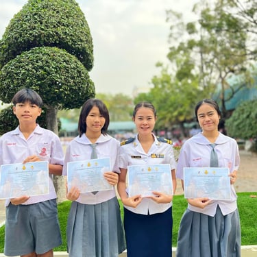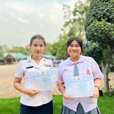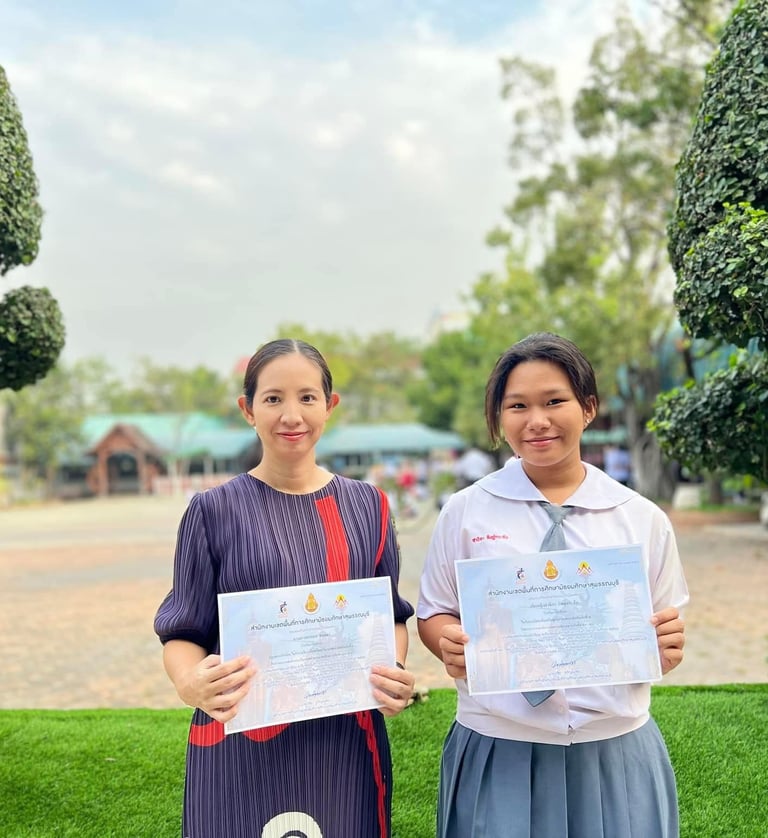 ดร.ณิชา ฉิมทองดี ผู้อำนวยการโรงเรียน มอบเกียรติบัตรให้แก่นักเรียนและครูที่ได้รับรางวัลจากการแข่งขันศิลปหัตถกรรมนักเรียนระดับมัธยมศึกษา จังหวัดสุพรรณบุรี
