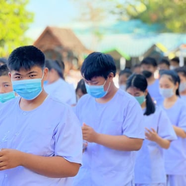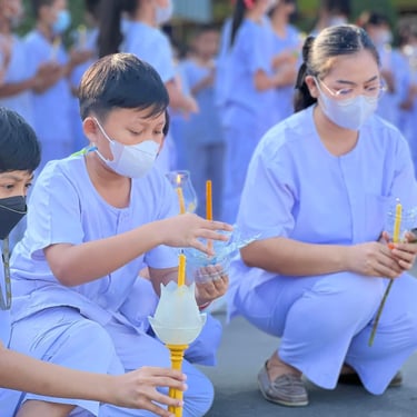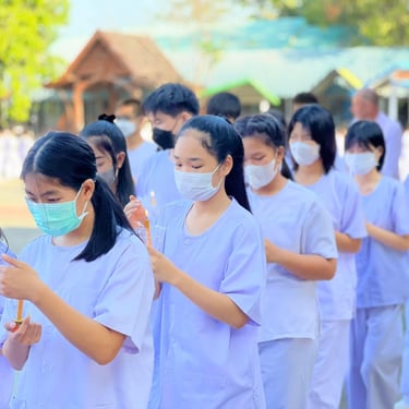 ในวันนี้ทุกคลาสได้ร่วมกันพากันเดินเข้าพรตทั้งโรงเรียน เพื่อร่วมเวียนเทียนและทำบุญในวันสำคัญนี้ นอกจากนี้ นักเรียนยังได้รับพรจากพระภิกษุ นอกจากความสันติสุขแล้ว นักเรียนยังได้รับการสอนแนวทางในการปฏิบัติตามศาสนาพุทธอย่างถูกต้อง